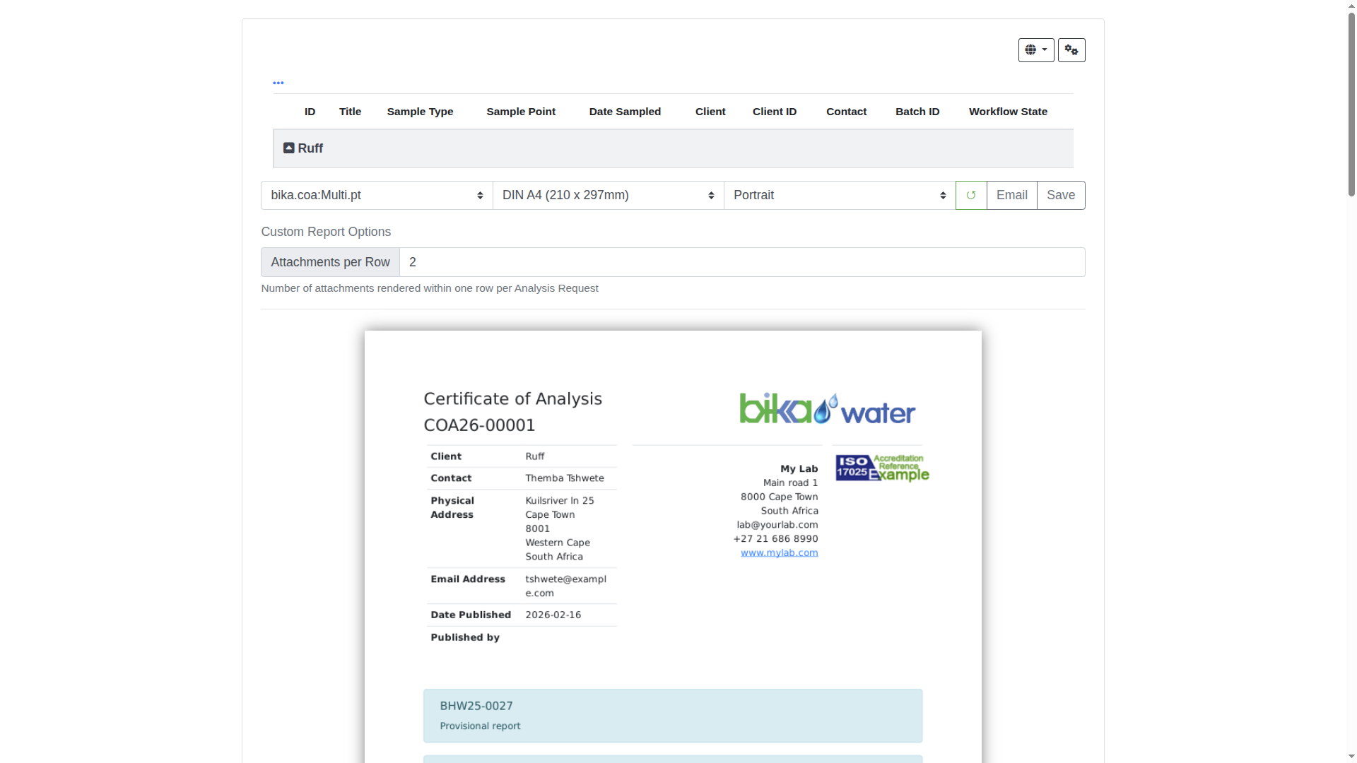 Samples Due list