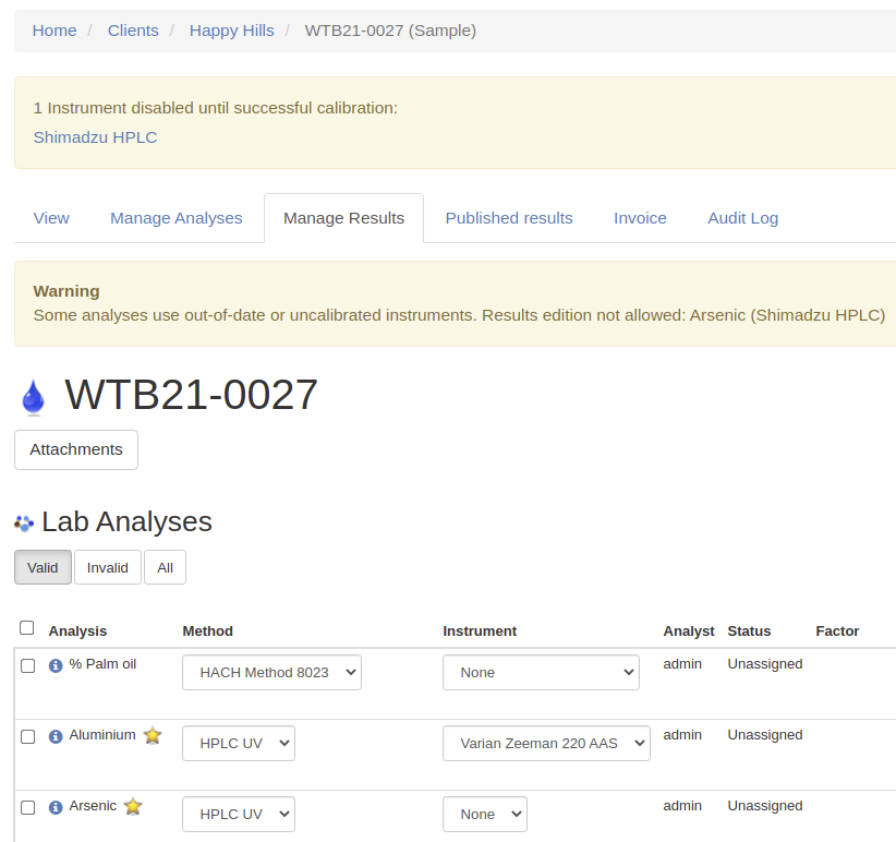 Bika LIMS Warning - Instruments calibration certificates expired