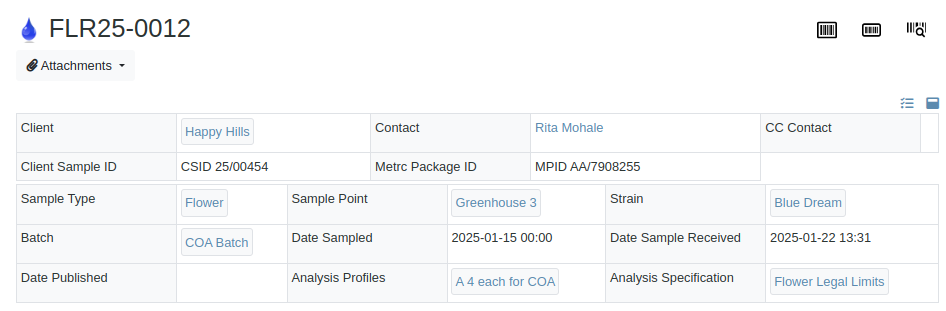 Sample Attributes section collapsed in Bika Open Source LIMS