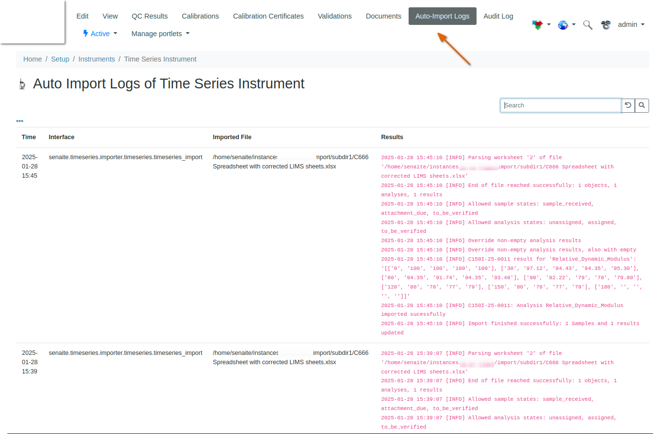 Successful Time Series Import Traceback in Bika Open Source LIMS
