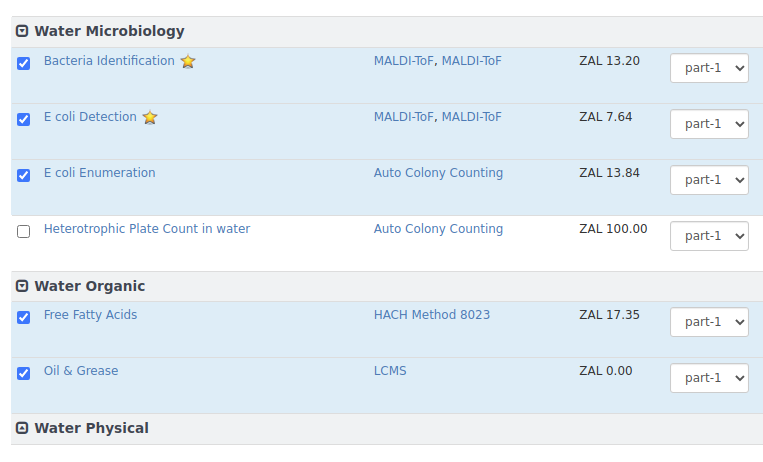 Sample Registration Template Analysis selection in Bika Open Source LIMS