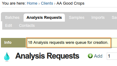 You are here: Home / User Manual / 12 Batching / Images - Bulk Batch Import / ARs queued for creation in Bika LIMS Senaite