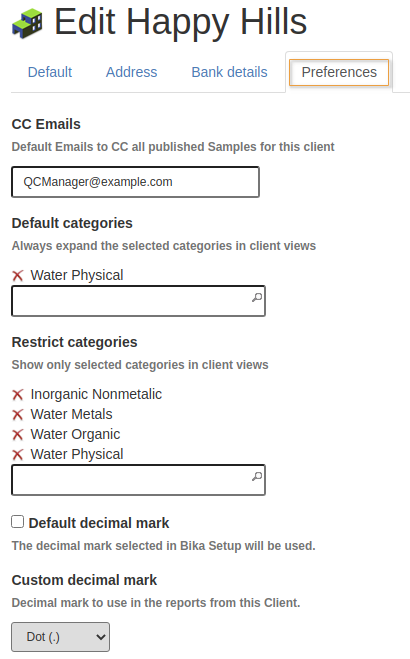 Client Preferences 1 in Bika Senaite Open Source LIMS