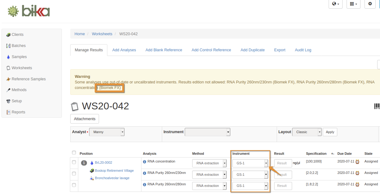 Invalid Instrument warning in Bika Open Source LIMS