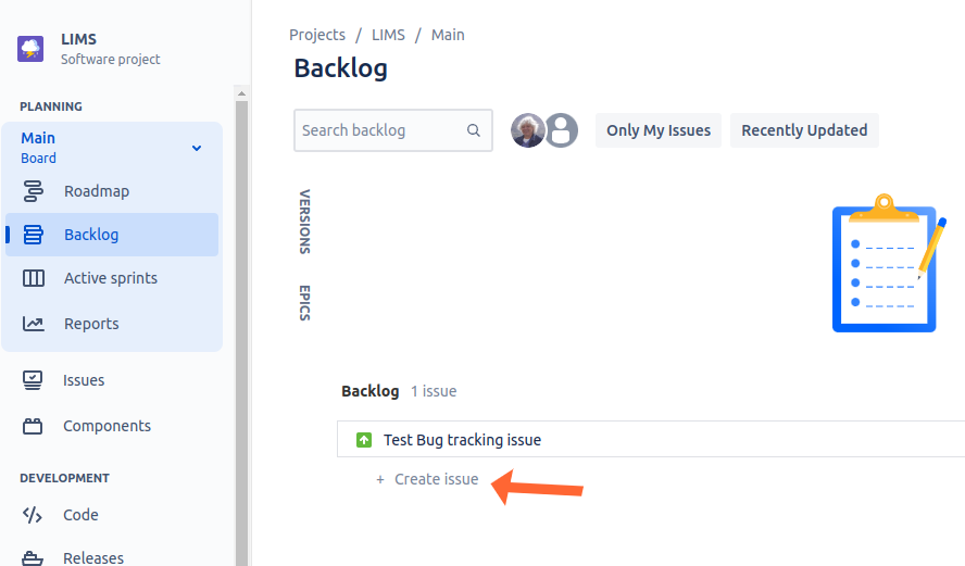 Create Issue screen 1