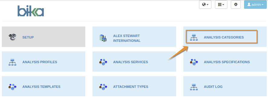 Select Analysis Categories in the Vika Open Source LIMS setup