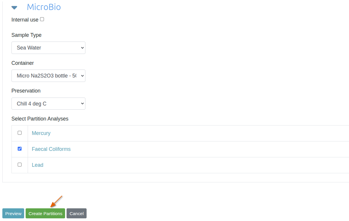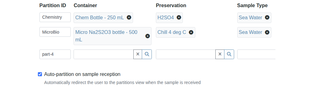 Use Case: For this tutorial we are going to set up a Sample template to facilitate automatically partitioning a Sea Water Sample on receipt: