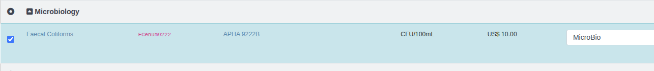 - MicroBio aliquot for the detection of Faecal Coliforms