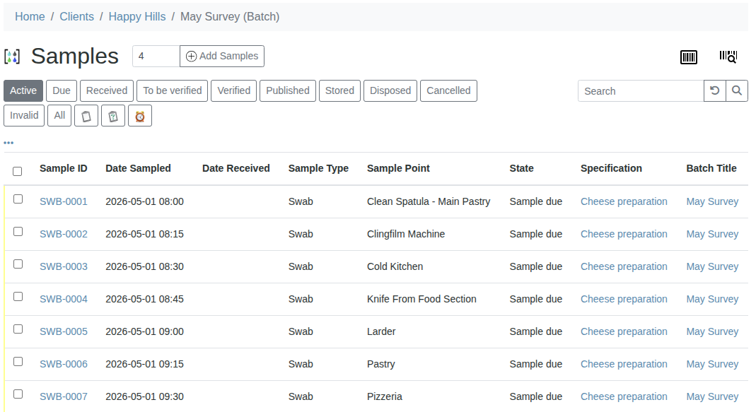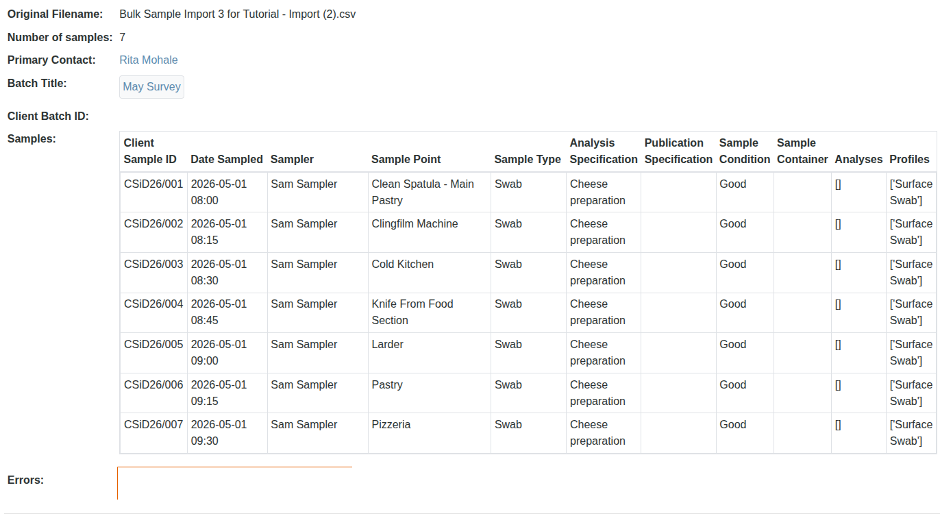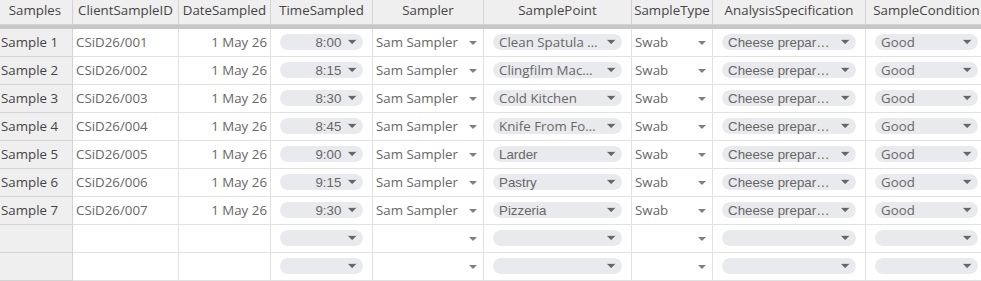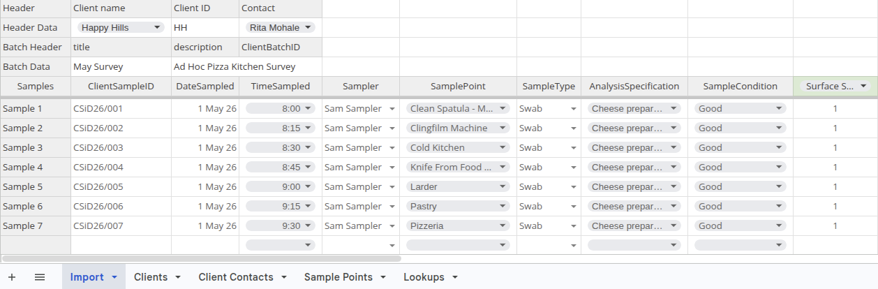 In this tutorial we will import the Samples collected during a hygiene survey of a cheese and pizza preparation kitchen
